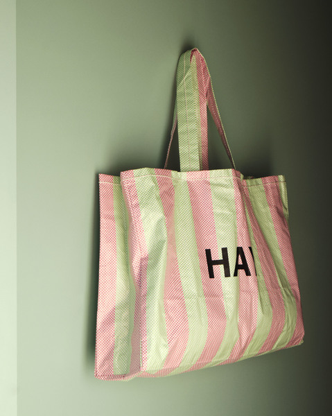 Realizzata in plastica resistente e durevole, la serie Candy Striped di Hay è una collezione di borse colorate e pratiche per trasportare la spesa e altri oggetti di uso quotidiano.